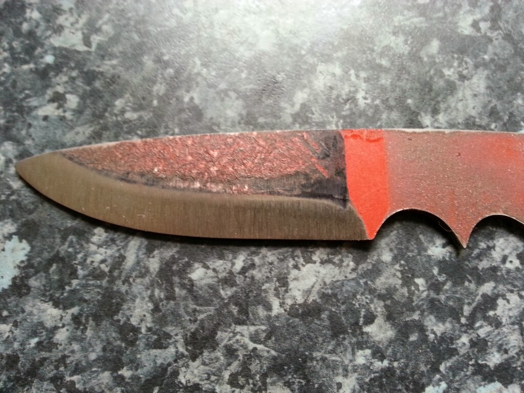 Here is my neck knife ready for heat treating. I sent it to Longstrider and he heat treated my blades up to 60 HRC.