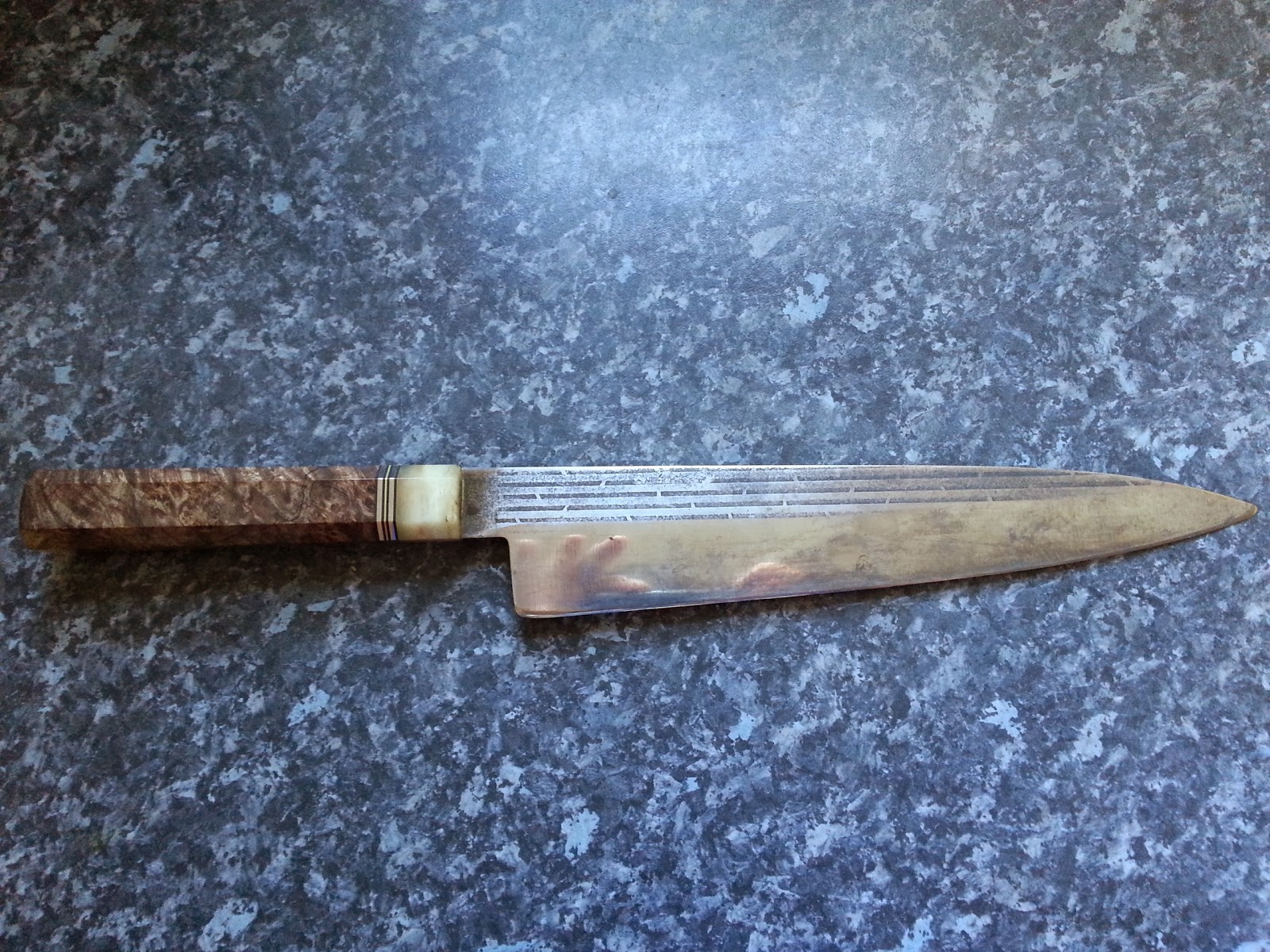 I used Iron Chloride to etch the knife.