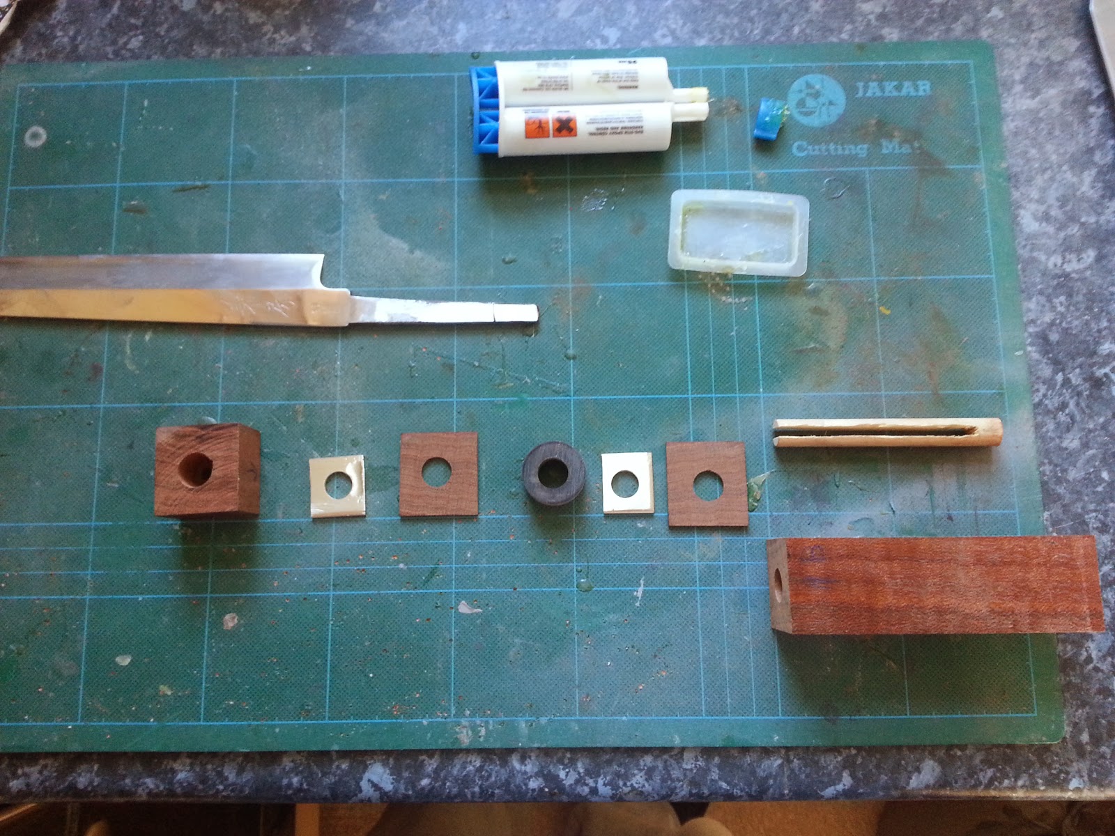 I am doing project for Magnus from Sweden out of some very expensive materials and I have to use new way of doing handles. I couldn't risk experimenting with his materials so I quickly made new handle for myself but in the same way and style as his. The point is that I was usually gluing materials together and then was doing tang hole. However this construction have some pros and cons. It's easy and quick to made but construction is not strong and after gluing everything you have to spend a lot of time on tang hole which is hardest thing to do.