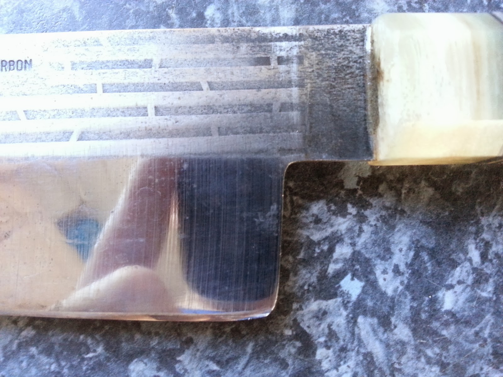 Also I had to make the choil bigger, round the spine and choil, eventually etch the whole thing and mirror polish bevels.